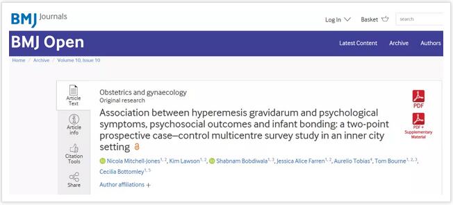 國際期刊BMJ OPEN發(fā)表了一項多中心前瞻性病例對照研究。這項研究聚焦于妊娠期嘔吐(NVP)和妊娠期劇烈嘔吐(HG)對婦女心理健康及母嬰親密關(guān)系的影響。