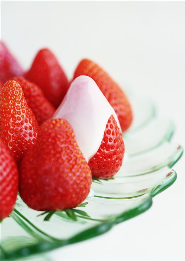 1、將草莓洗干凈后直接擺放在盤(pán)中備用。