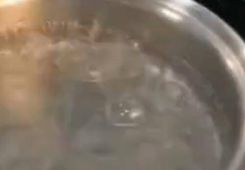 2、水燒開后,取出即食佛跳墻,然后連同包裝盒一起放入鍋中,煮10分鐘解凍。
