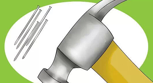 2. 將5個釘子排成一條線,輕輕砸進軟木塞中。