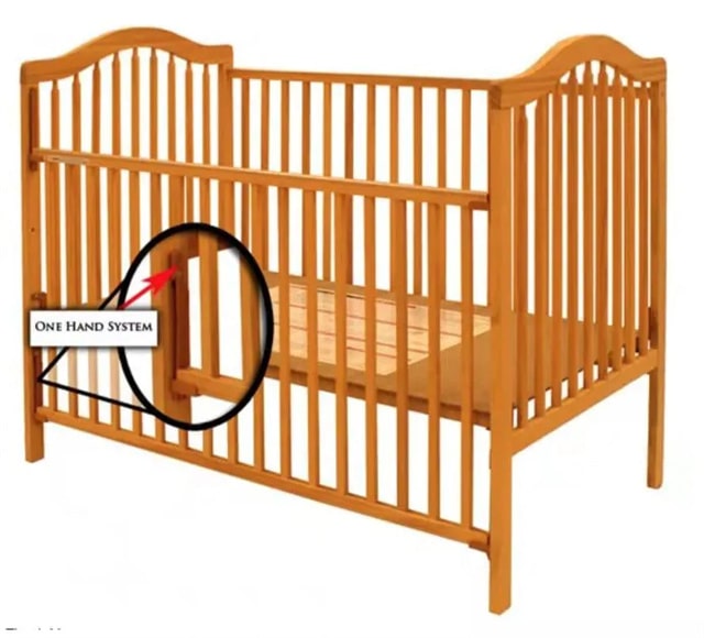 為了方便家長把寶寶放進(jìn)或抱出嬰兒床,部分嬰兒床的一側(cè)床欄可升降,這類嬰兒床有潛在危險(xiǎn),不要買。