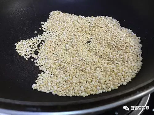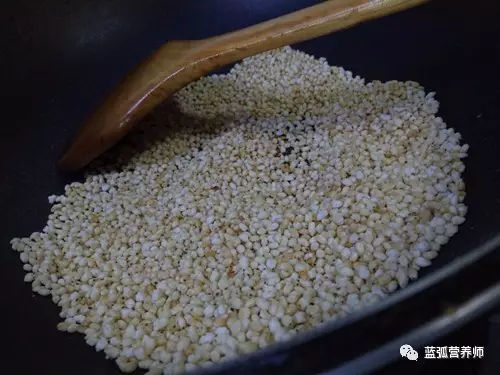 第三步:大米放入無油無水的鍋里,開中小火慢慢炒,需要不停的翻炒防止受熱不均和米變糊;