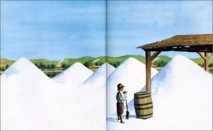 我們只有在的時(shí)候才休息一會(huì)兒——土豆和玉米餅是爸爸放在他的外衣口袋里帶帶來(lái)的。我一邊吃飯,一邊看著這些白色的鹽山。鹽巴很重,也很粗糙。一不小心這些閃亮的魄晶體就會(huì)割破你的手、胳膊、腿和腳掌。