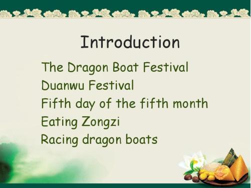 Dragon Boat Festival,the Double Fifth 或者 Duanwu Festival.