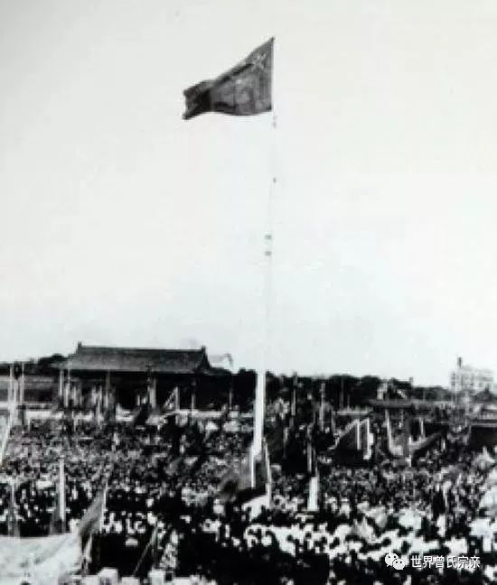 1949年10月1日,北京天安門廣場(chǎng)舉行隆重開(kāi)國(guó)大典,毛澤東主席在天安門城樓上,親手撳動(dòng)電鈕,升起了新中國(guó)第一面五星紅旗,全場(chǎng)30萬(wàn)群眾一片歡騰。