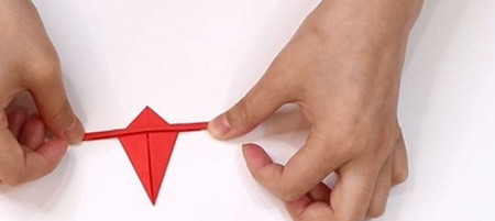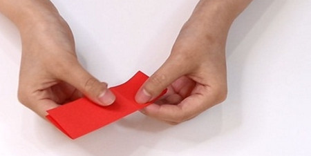 8、將另一頭多次折疊,成為細(xì)條狀。