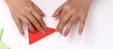 5、將三角形對(duì)準(zhǔn)另一頭的折痕折疊。
