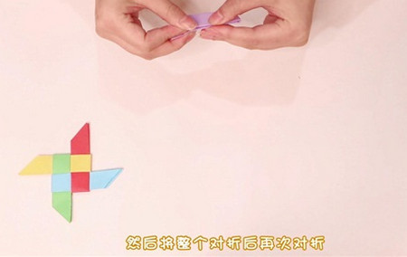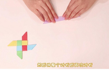 3、第三步:再沿中間線對折。其它三種張紙也同樣折疊出來。