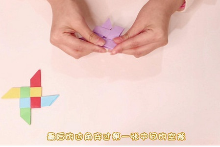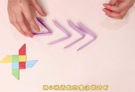4、第四步:將四個紙條拼接到一起。最后整理一下,簡單的飛鏢折紙就完成啦!