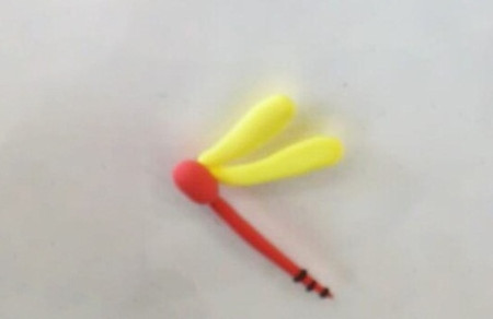 首先用紅色橡皮泥做出蜻蜓豌豆形狀的腦袋與細(xì)長的身體。