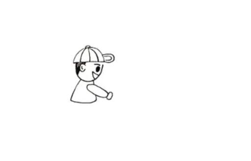 1.首先畫出小男孩的頭部是側(cè)在一邊的。