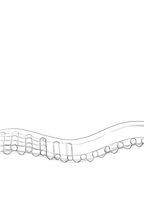 1.首先我們采用豎向構圖,用鉛筆在畫紙上確定矮墻的高度,完成畫面的分割。