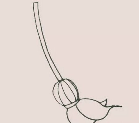 在棍子下面畫出半個(gè)橢圓,用兩條小弧線連接起來。