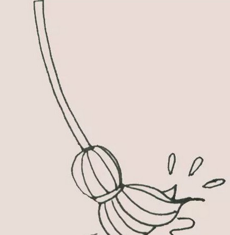 在拖把旁邊畫出一點(diǎn)濺出來的水花,以及用弧線畫出一點(diǎn)地上的水漬,這樣一個(gè)拖把的簡筆畫就畫好了。
