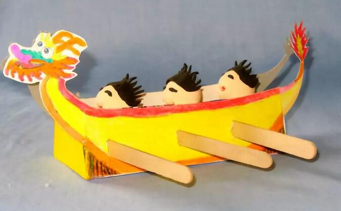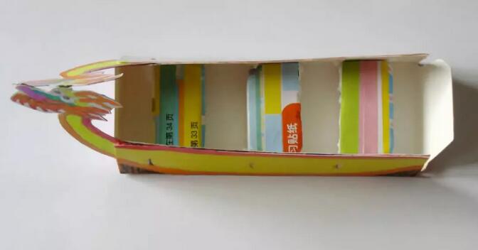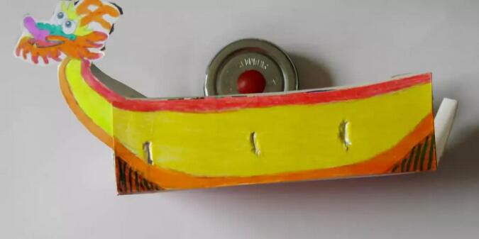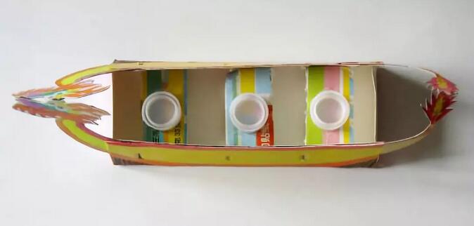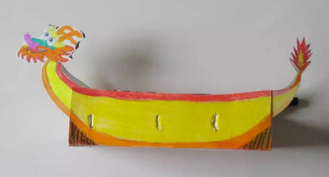 給船身涂色,將龍頭和龍尾粘貼到紙盒上,然后將兩邊龍頭、龍尾相粘,這樣更加形象生動(dòng),當(dāng)然這個(gè)粘貼的過(guò)程還有點(diǎn)小技巧,要貼牢固了。