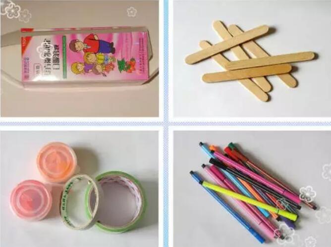 準(zhǔn)備材料:剪刀、雙面膠、透明膠帶、橡皮泥、冰棒棍、紙盒、彩筆、泡沫等。