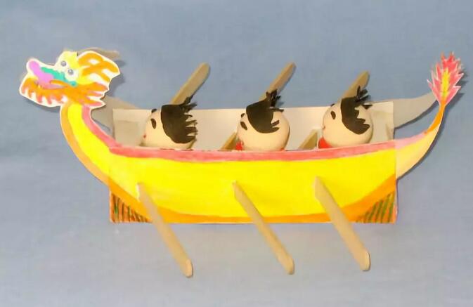將船漿插入船身,一件漂亮的小龍舟就做成了。