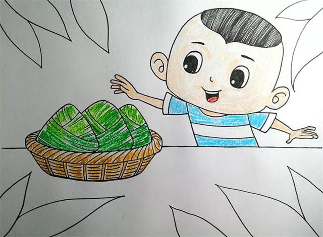 6. 給新添加的粽子葉上色,完成整幅畫面。端午節(jié)吃粽子之余,何不拿起畫筆也畫一幅呢?