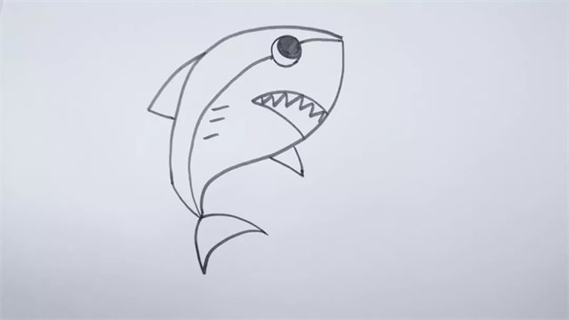 第一步:先畫(huà)出鯊魚(yú)的形狀。