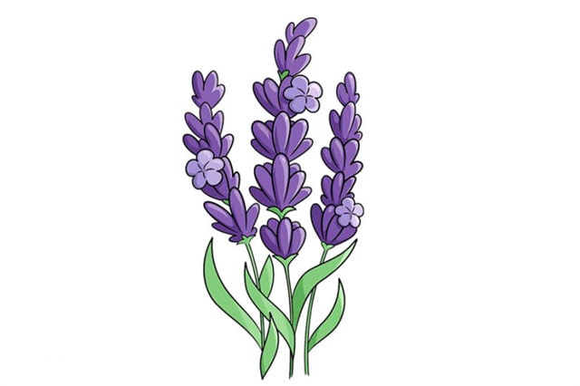 10、為您的卡通薰衣草上色。這種植物通常有銀灰色的葉子和紫色的花。它也有粉紅色和白色。