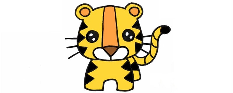 9、最后,用黑色、黃色和橙色給小老虎涂色,萌萌的小老虎簡筆畫就畫好啦。