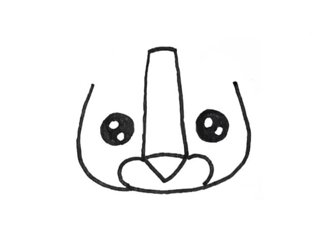 4、然后,畫一個大大的U形,小老虎的臉部就出來了。