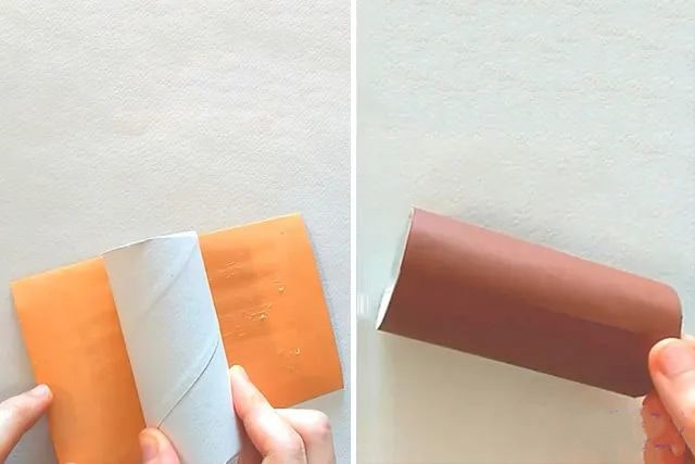 3、取一咖啡色或棕色矩形卡紙,矩形的寬和衛(wèi)生紙筒的高度一致。再把衛(wèi)生紙筒放在矩形卡紙左端,然后從左到右卷起卡紙,把衛(wèi)生紙筒包裹在里面,末端用膠帶固定。