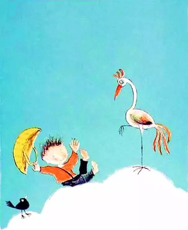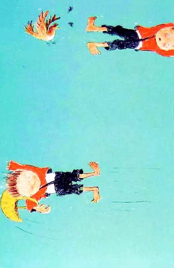 所有經(jīng)過的東西都沒有頭緒,沒有來由,亂七八糟。這是一本強調(diào)想象力的繪本,兒童豐富的想象力在這里天馬行空,就像這本豎排的繪本形式一樣從天空自上而下不斷地墜落...