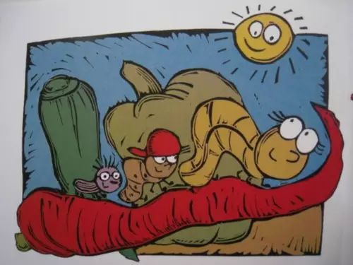 “我來啦!”一只更小的蟲子從他藏身的葉子中鉆了出來。