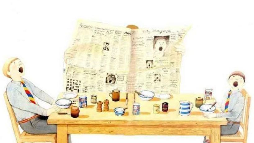 回歸現(xiàn)實,問問孩子,誰是豬?你是豬嗎?繪本故事把好吃懶做的朱家父子三人隱喻成豬。畫面隨著故事的深入一點點滲透豬的形象。豬胸針、豬門把手、豬影子……到最后父子三人的豬頭像。孩子會像尋找寶藏一樣的去尋找畫面中的豬。當(dāng)然,更多的豬形象等待著你去發(fā)現(xiàn)。