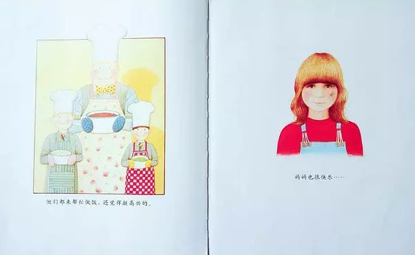 而朱媽媽,在故事中出現(xiàn)的最多的就是昏暗光線下的背影、側(cè)影,看不清表情。可以問問您的孩子,聽一聽他是怎么理解的!當(dāng)然,如果爸爸和孩子一起讀這本書,相信效果會更好!