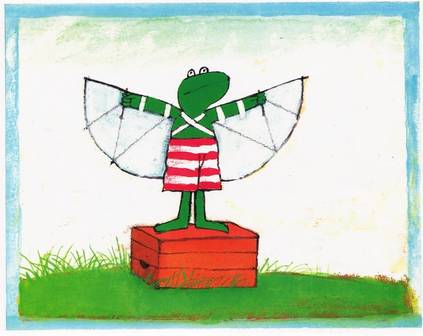 弗洛格很沮喪,覺得自己什么都不會,只是一只普通的青蛙而已。野兔安慰弗洛格,我們愛你只是因為你是一只青蛙,一只穿著條紋泳褲的綠色青蛙,想通了這一點,弗洛格又覺得很開心了,他快樂地大跳,感覺自己好像在飛呢。