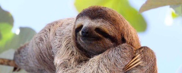2、樹懶(學名:Folivora):是哺乳綱披毛目下樹懶亞目動物的通稱,哺乳動物,共有2科2屬6種。形狀略似猴,動作遲緩,常用爪倒掛在樹枝上數(shù)小時不移動,故稱之為樹懶。樹懶是身上長有藻類、地衣等植物的野生動物,它雖然有腳但是卻不能走路,靠得是前肢拖動身體前行。分布于南美洲。毛被蓬松長厚;頭短圓,耳小并隱于毛內;尾短;前肢3指,后肢3趾,均有可屈曲的銳爪,前肢長于后肢;上顎有齒5對,下顎4對,共18枚;胃分數(shù)室;頸椎9節(jié),為哺乳動物中最多者;全身毛色灰褐因身上毛被附著有藻類植物,外表呈現(xiàn)綠色。